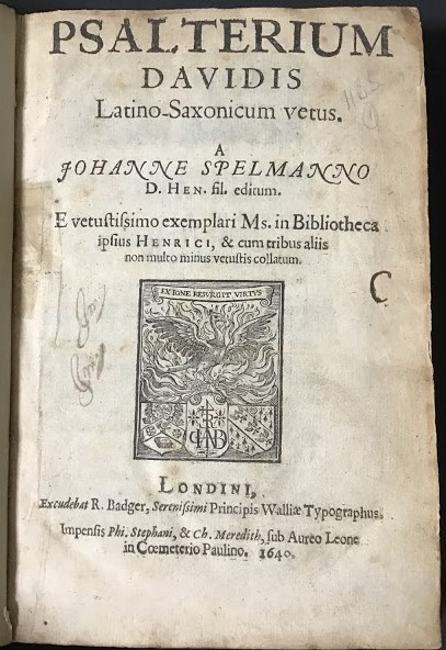 This is the editio princeps of the Stowe Psalter preserved in the British Library manuscript, Stowe MS 2. This mid-eleventh-century manuscript used to belong to Sir Henry Spelman, and the editor of this edition, John Spelman, is his son. Later the manuscript came into possession of Richard Temple-Nugent-Brydges-Chandos-Grenville, 1st Duke of Buckingham and Chandos and was kept in Stowe House, which is why it is called the Stowe Psalter now.