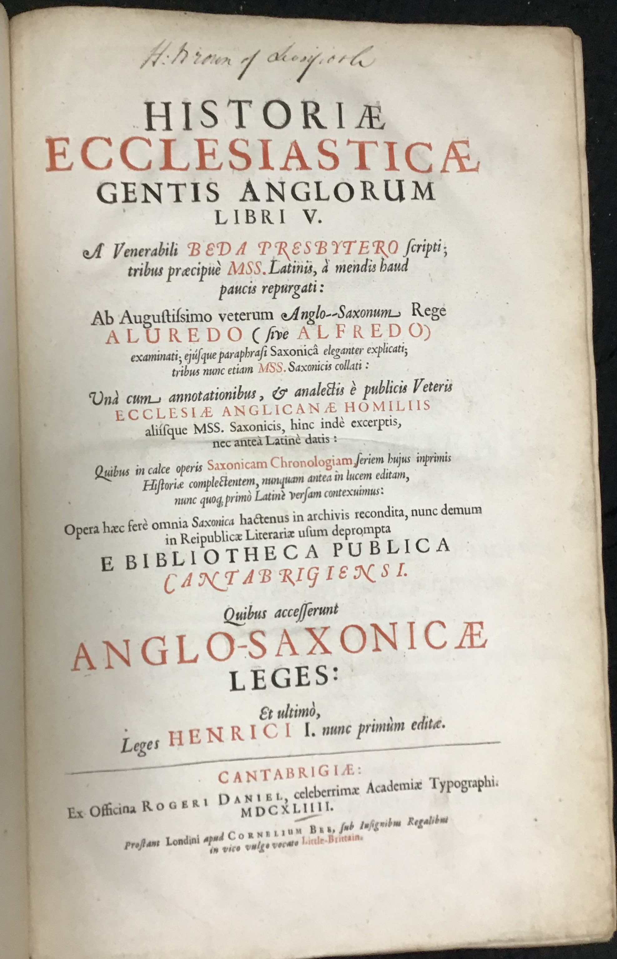 A. Wheelocke, ed., Historiæ ecclesiasticæ gentis Anglorum libri V. &c. (1644)