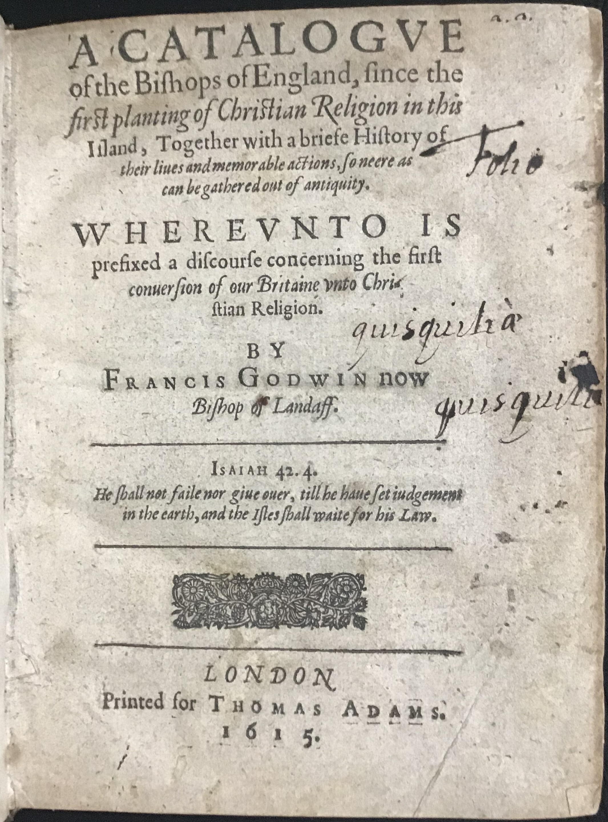 F. Godwin, A Catalogue of the Bishops of England (1615)