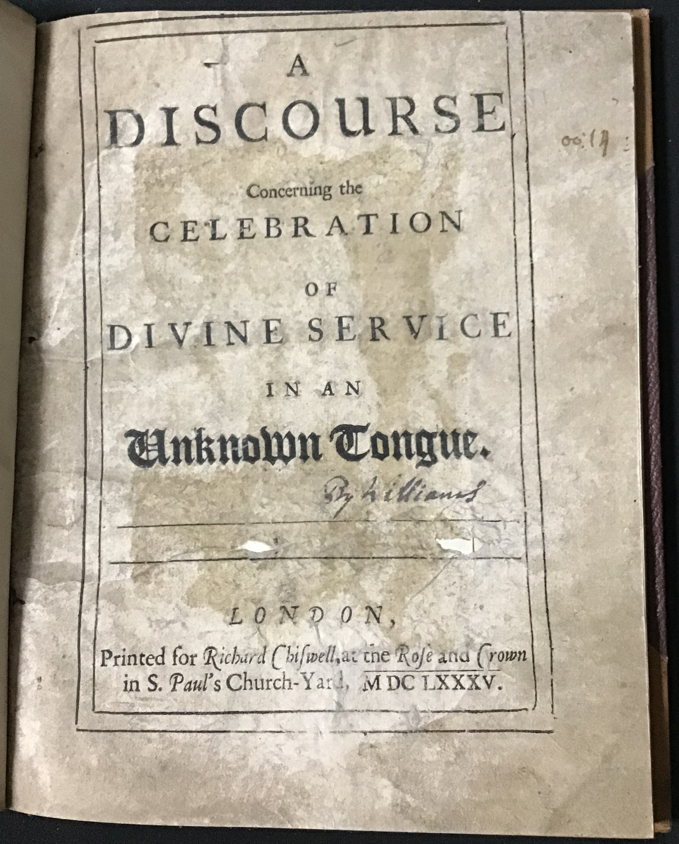 J. Williams, A Discourse concerning the Celebration of Divine Service in an Unknown Tongue (1685)