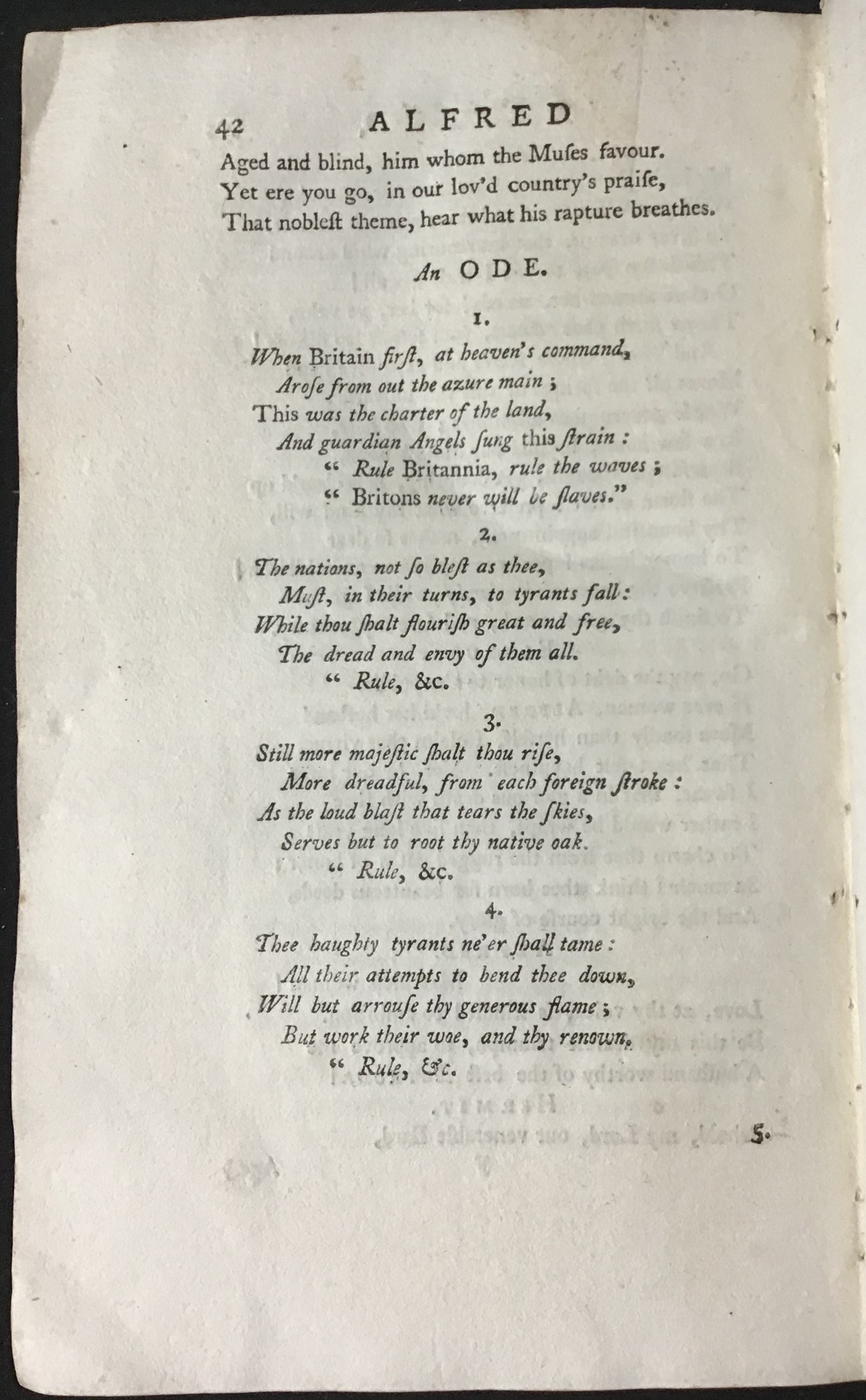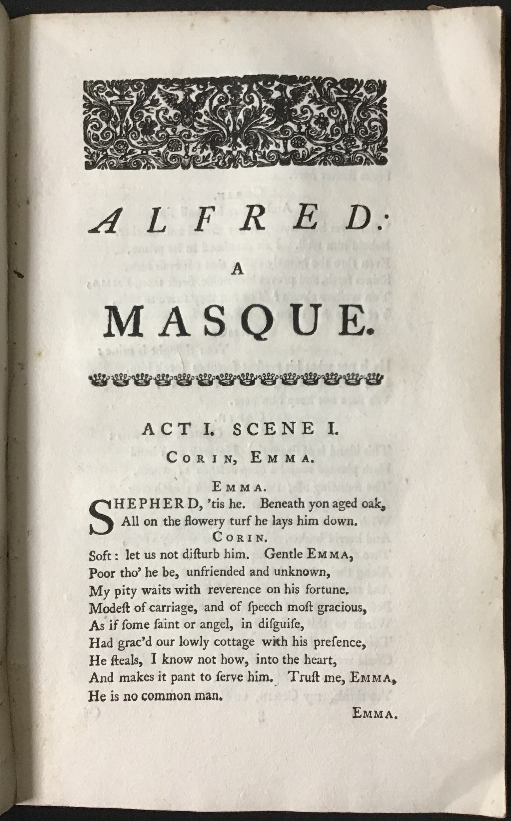This is a disbound libretto of a masque about King Alfred the Great by James Thomson and David Mallet. It was first performed in the garden at Cliveden House, the country retreat of Frederick, Prince of Wales, near Maidenhead, to commemorate the accession of George I and the birthday of Princess Augusta on 1 August 1740. Its music was written by Thomas Arne, and it includes 'Rule, Britannia!' as its finale. This patriotic song, outliving the work itself and still current, was originally composed for this masque and its words were printed here for the first time.