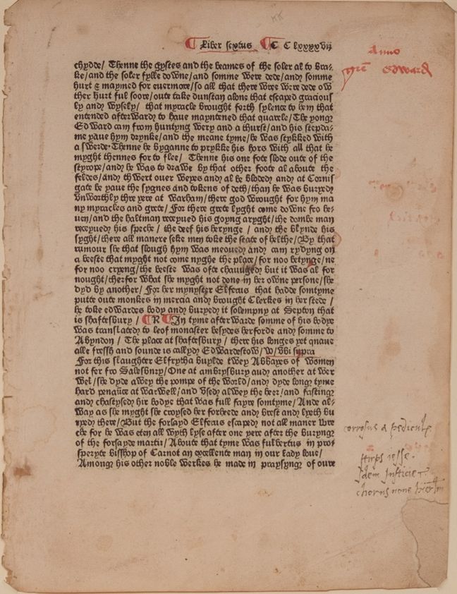 A Leaf from Trevisa's ME Translation of Higden's Polychronicon Printed by William Caxton (1482)