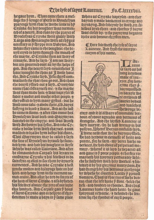 A Leaf from The Golden Legend printed by Wynkyn de Worde (1527)